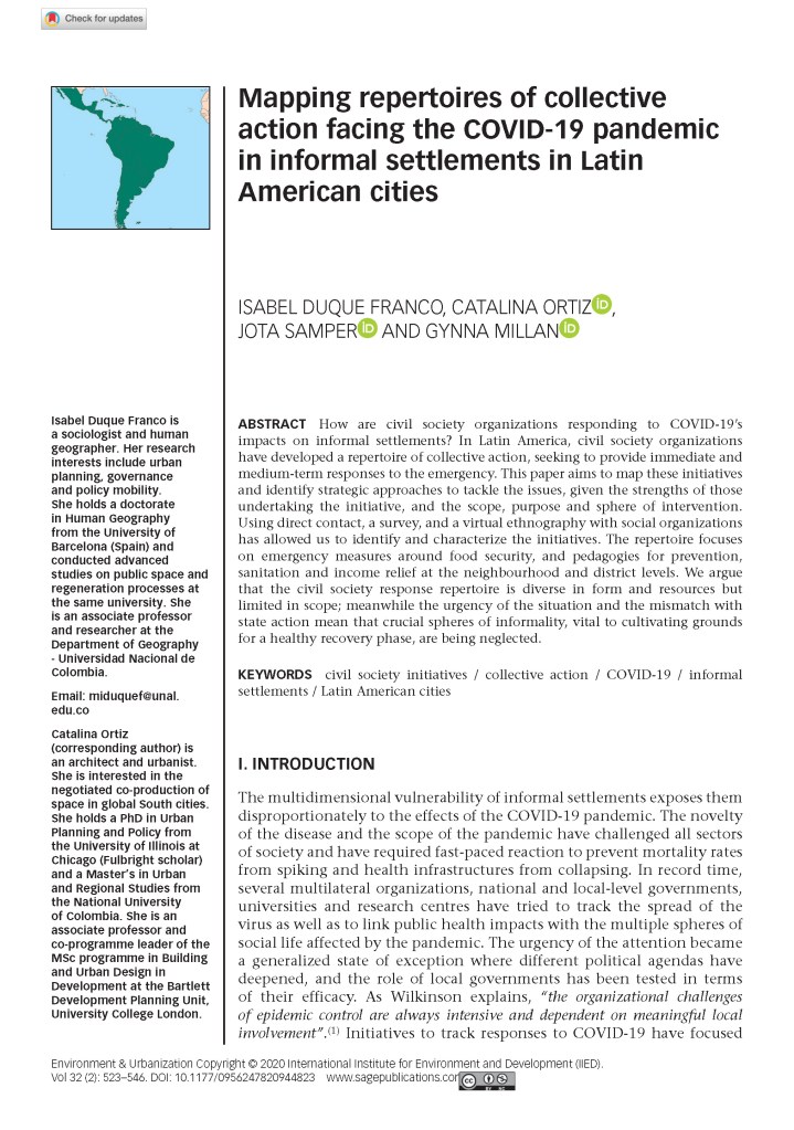 Mapping repertoires of collective action facing the COVID-19 pandemic in informal settlements in Latin American cities
