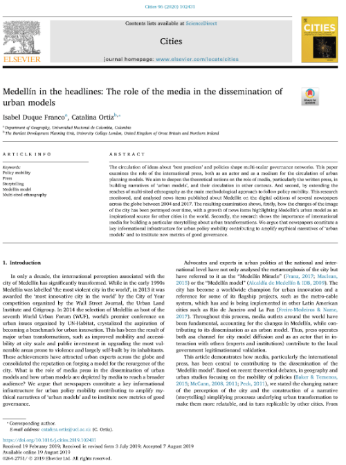 Medellín in the headlines: The role of the media in the dissemination of urban models